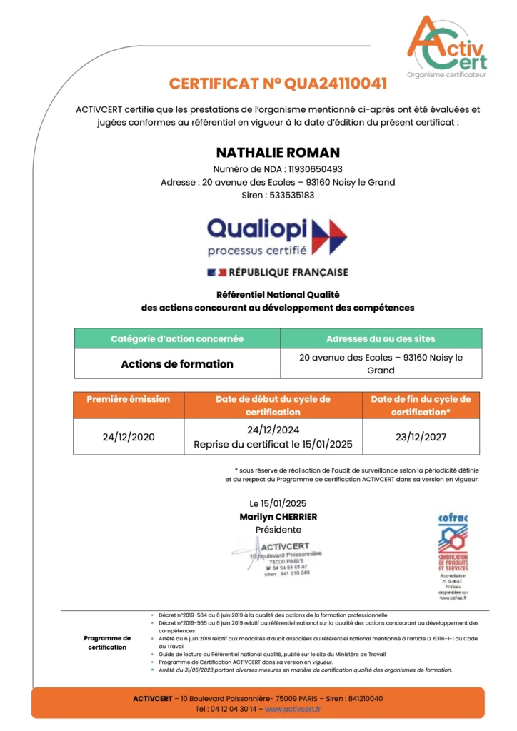 Certificat Qualiopi My English Training